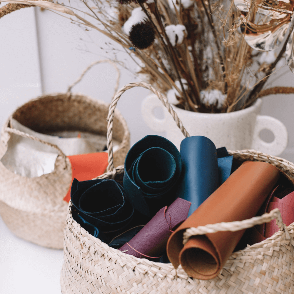 Pochettes de 250g chacune composées à partir des chûtes de cuirs de l'atelier. À l'intérieur, c'est la surprise :) nous les remplissons au fil des saisons et des découpes que nous réalisons dans notre atelier parisien !
