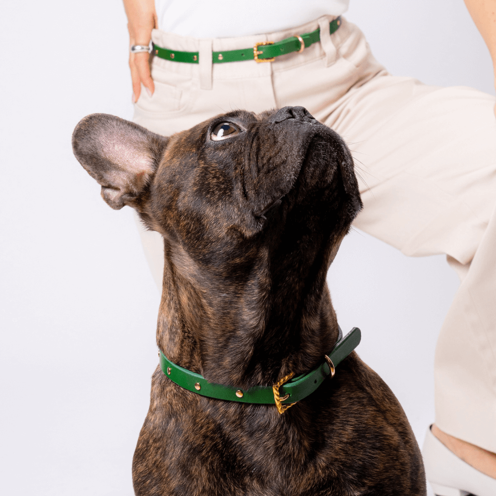 Nous proposons sur place une large sélection de coloris & textures de cuirs et boucles. Pensez à vous munir d'un collier de votre chien lors de l'atelier (ou bien mesurez son tour de cou), ce dernier nous servira de base.